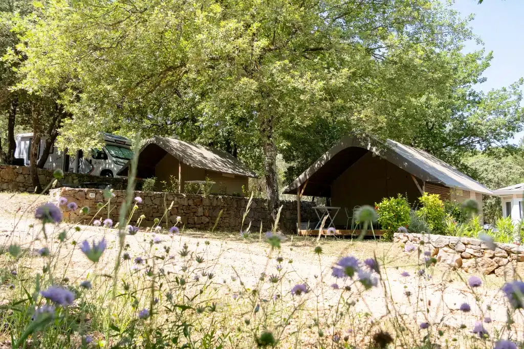 Les emplacements de notre camping 4 étoiles sont bordés de restanques, jolis murets de pierres sèches typiques de la Provence qui nous donnent un côté insolite.