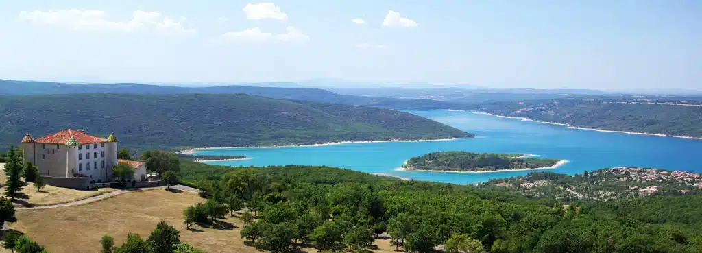 Grande retenue d’eau, le lac de Sainte-Croix est né de la construction du barrage de Sainte-Croix réalisé sur le Verdon. En plein cœur des Gorges du Verdon.